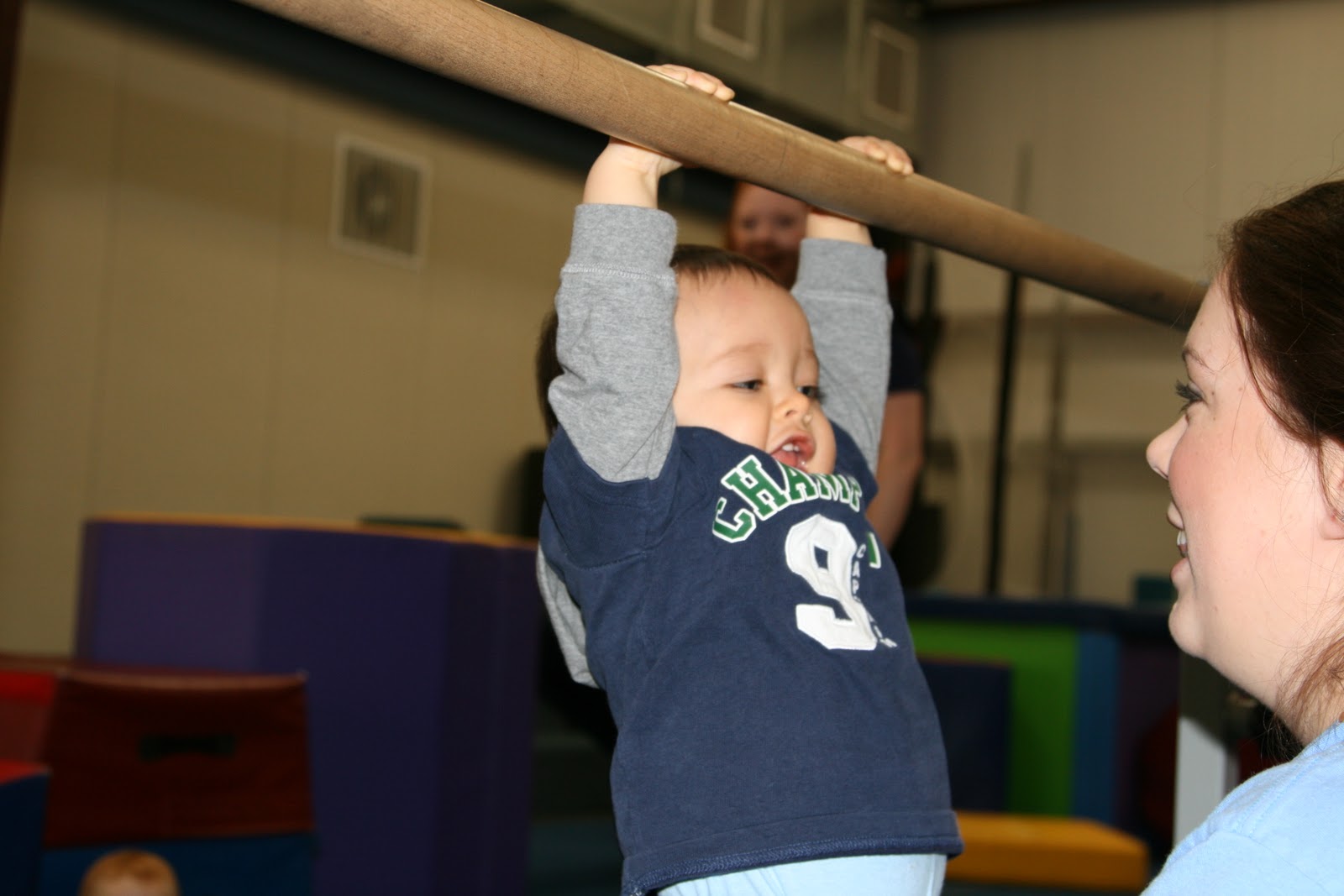 Some people house shop, window shop, church shop... we are currently gymnastics shopping... and at a great time too! Groupon has been offering discounted classes at several gyms in the Folsom area, so we will just have to try them all out! We are currently at Tumble Time in Cameron Park, simply because it's the closest gym to us. On a nice day, we could walk there! We just completed a month's worth of classes there and the week of his birthday, Daddy came too!